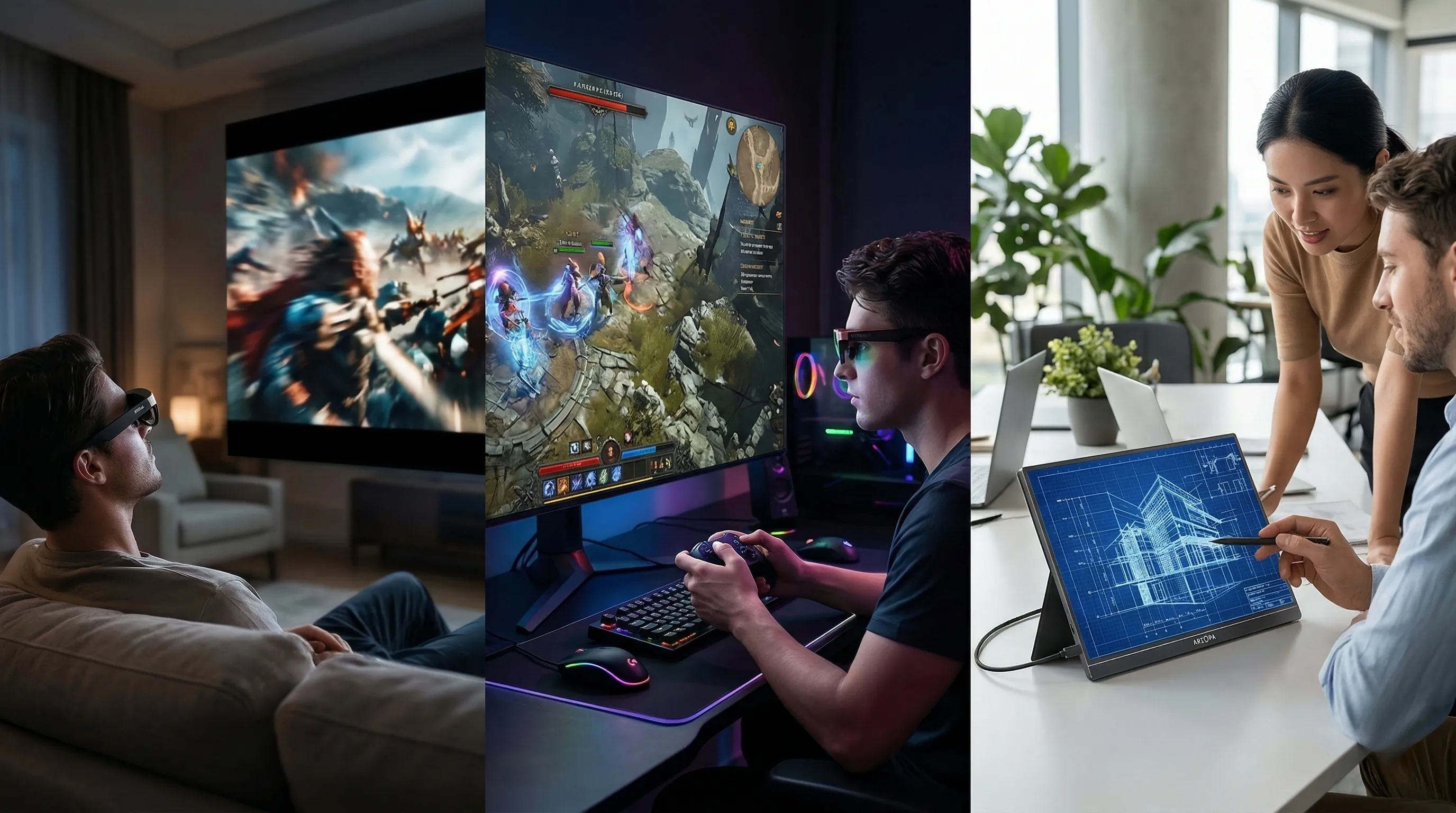 This review dives into three prominent options: the XREAL One Pro AR Glasses with X1 Chip, the VITURE Luma Pro XR Glasses, and the ARZOPA Z3FC 180Hz Portable Monitor (16.1").