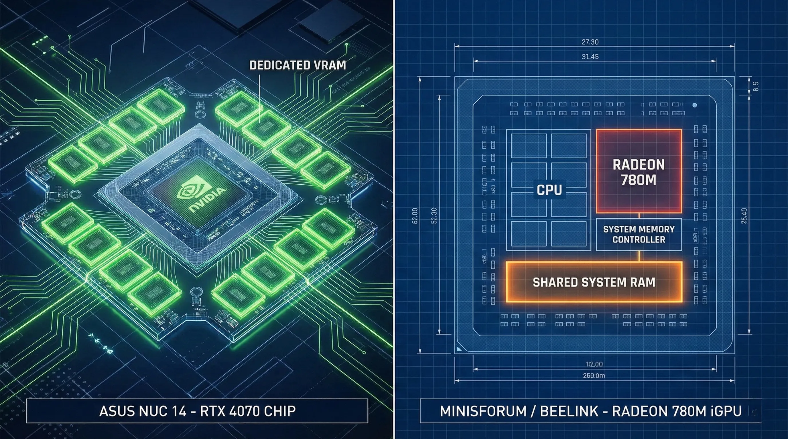 Dedicated VRAM (found in ASUS) is a private lane for graphics; Shared VRAM (found in Minisforum/Beelink) means sharing the road with your system memory, which can cause traffic jams in heavy games. - OCuLink: