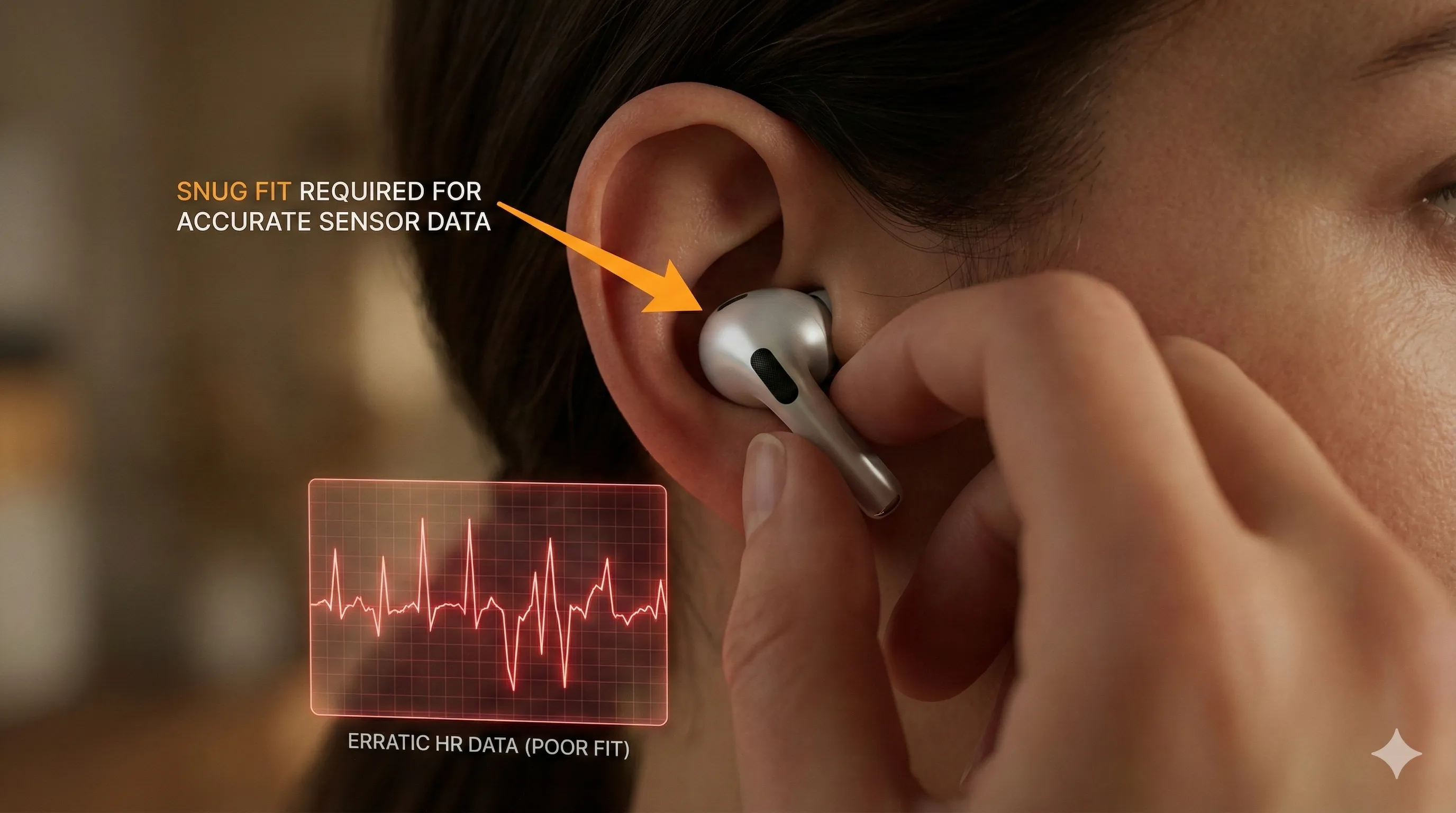 The optical heart rate sensor in the AirPods Pro 3 is extremely sensitive to how the earbud sits within the ear canal.
