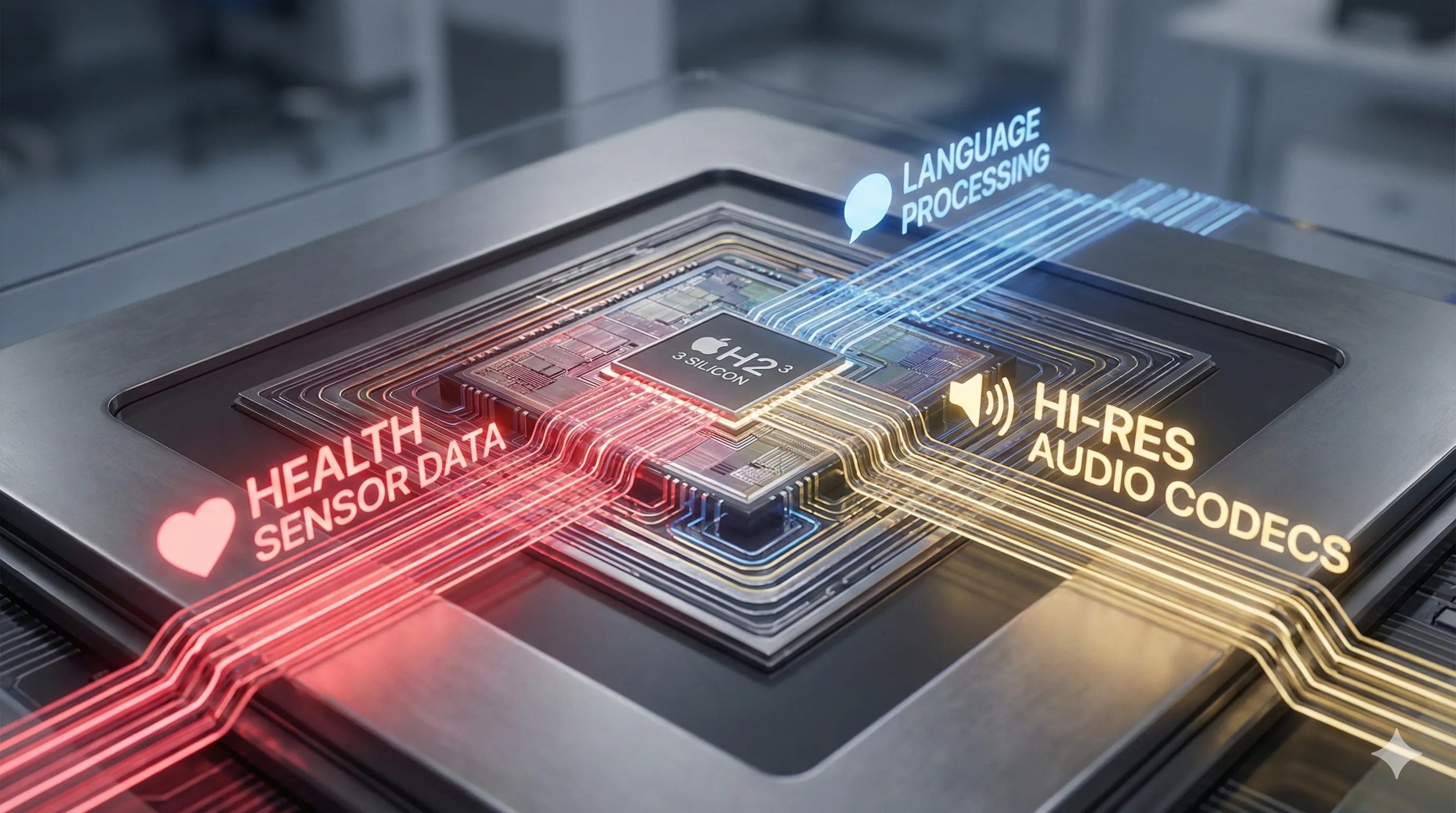 In the AirPods Pro 3, the cutting-edge H3 chip functions as a dedicated processing powerhouse for health monitoring and audio purity.