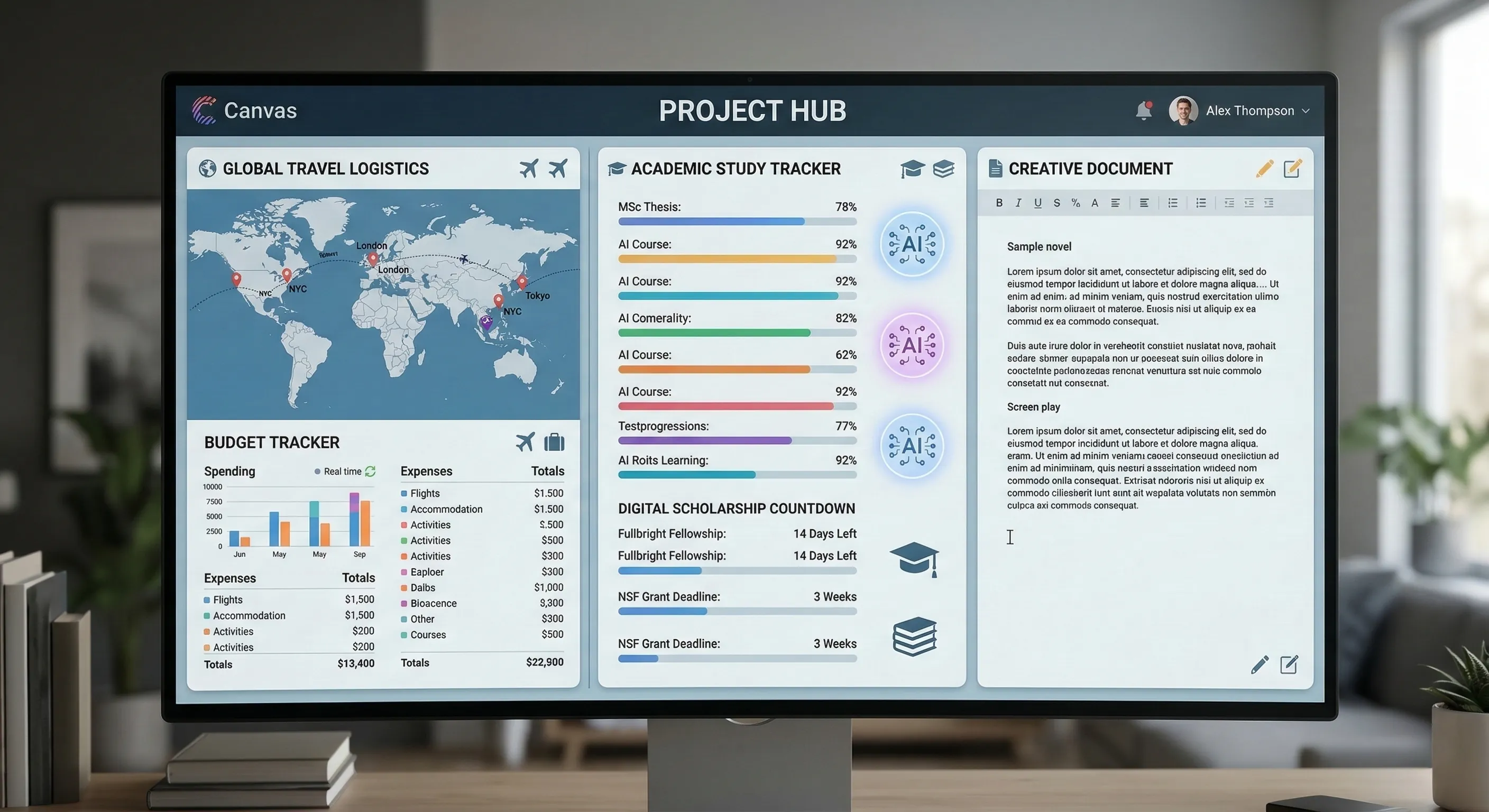 Leverage the real-time web integration to keep your data current—ask Canvas to update flight prices or refresh scholarship requirements with a single prompt.