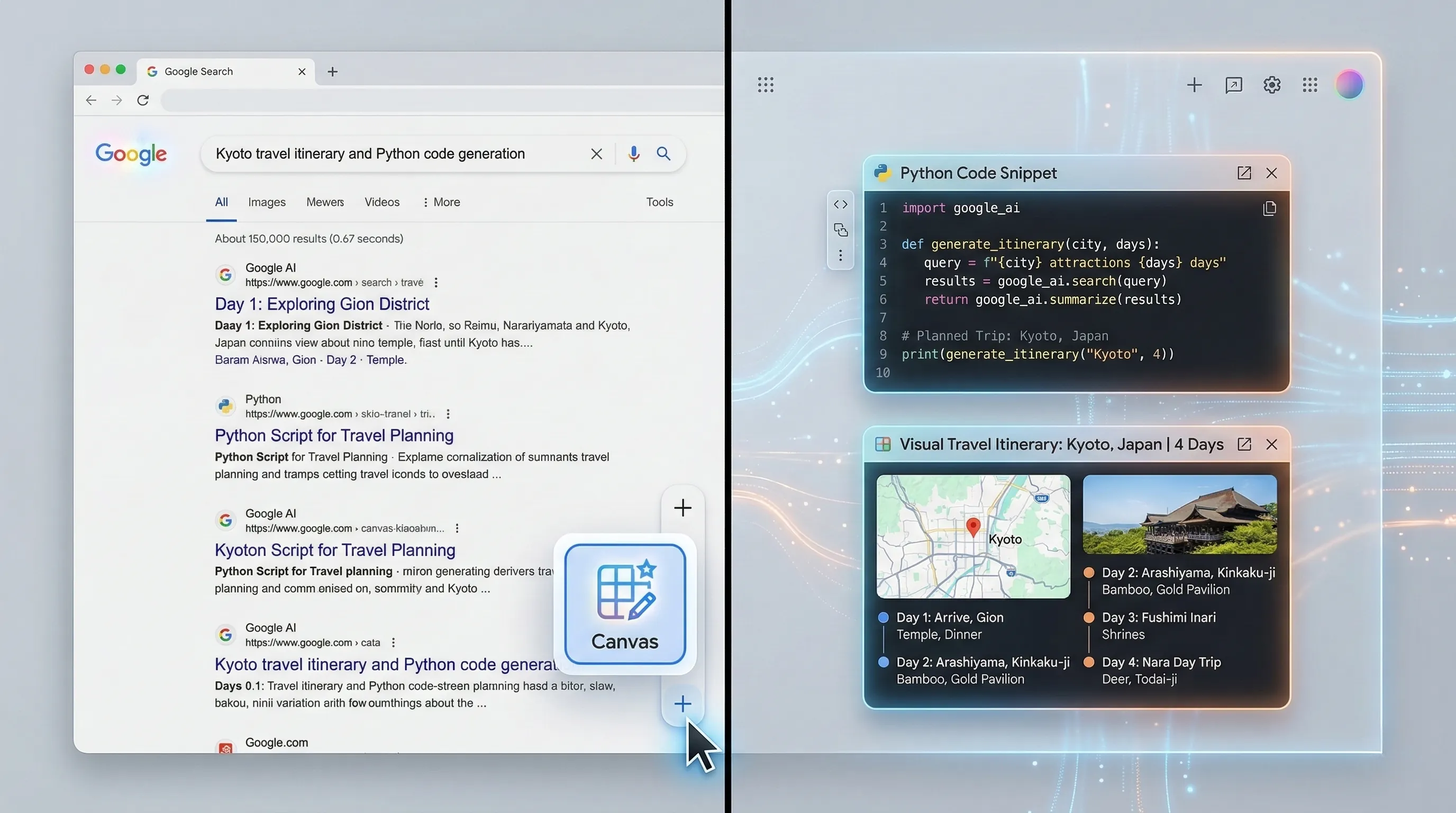 Canvas in AI Mode transforms the static search experience into an interactive development environment.