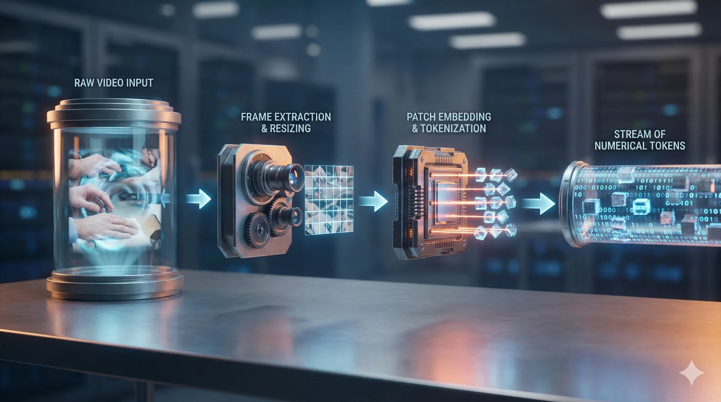 Preprocessing these videos involves significant computational effort to extract frames and tokenize them for the model's input.
