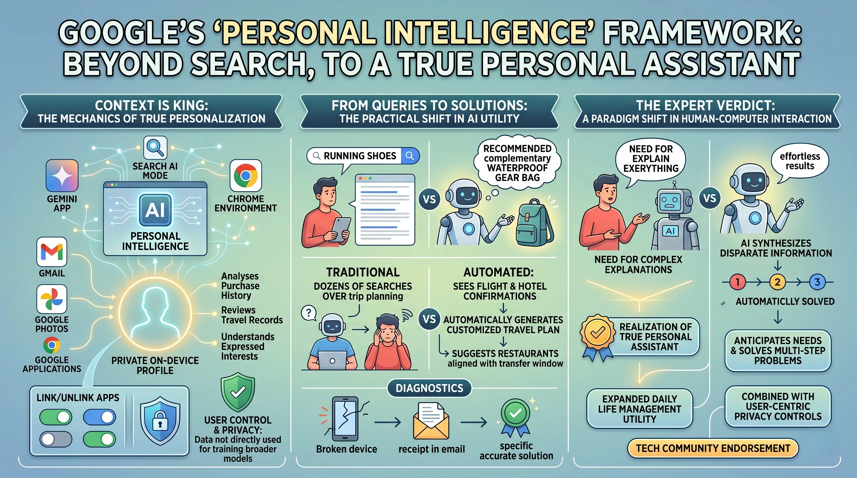 - Google's "Personal Intelligence" marks a pivotal shift, evolving AI from a mere search tool into a true personal assistant that deeply understands individual user context, preferences, and history.