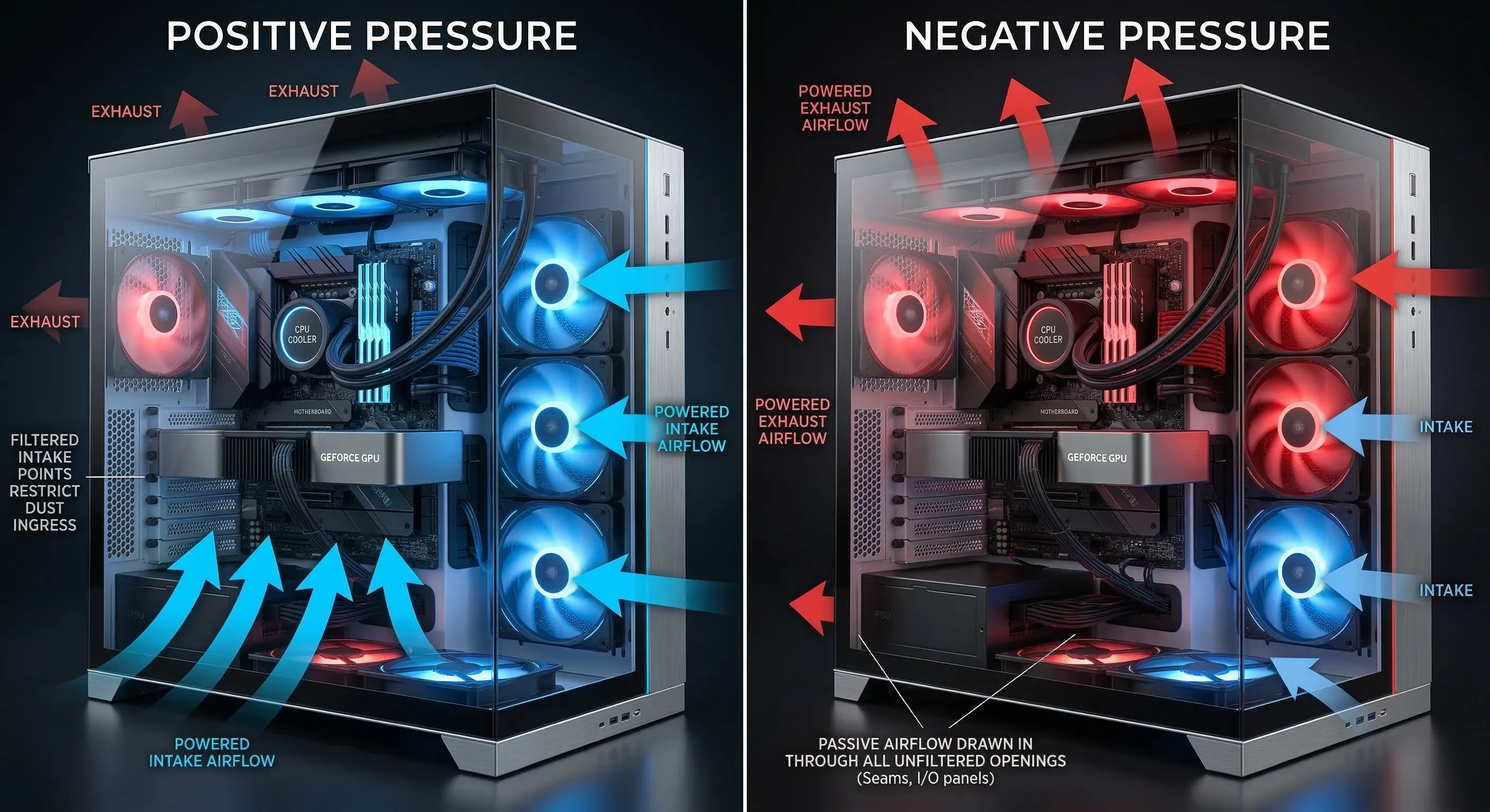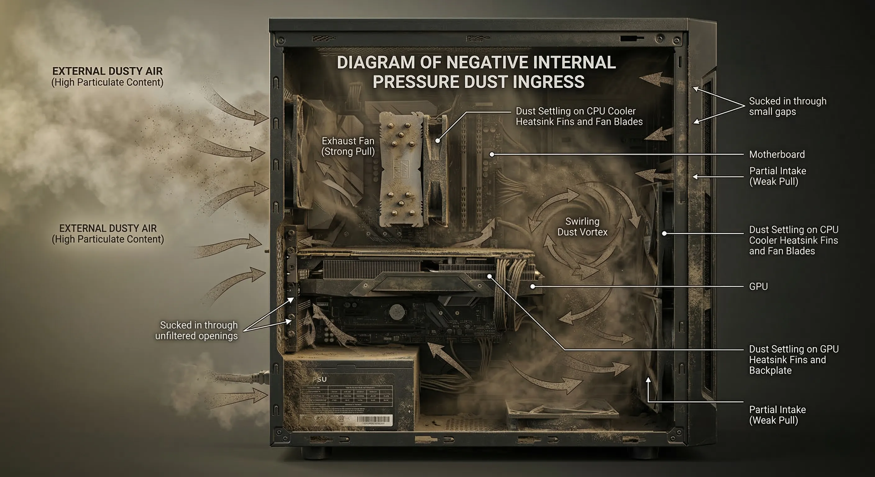Therefore, understanding that negative pressure can lead to dusty air ingress is crucial for any PC builder.