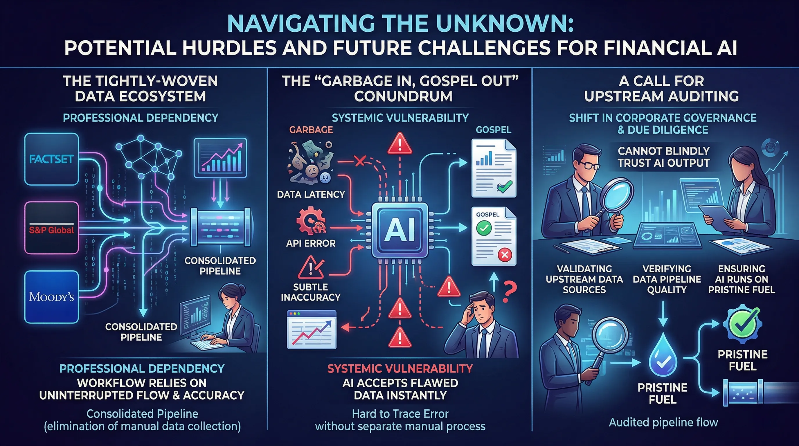 If a source provider experiences data latency, an API error, or transmits a subtle inaccuracy, the AI will likely accept this flawed data as fact and incorporate it into its models and valuations instantly.