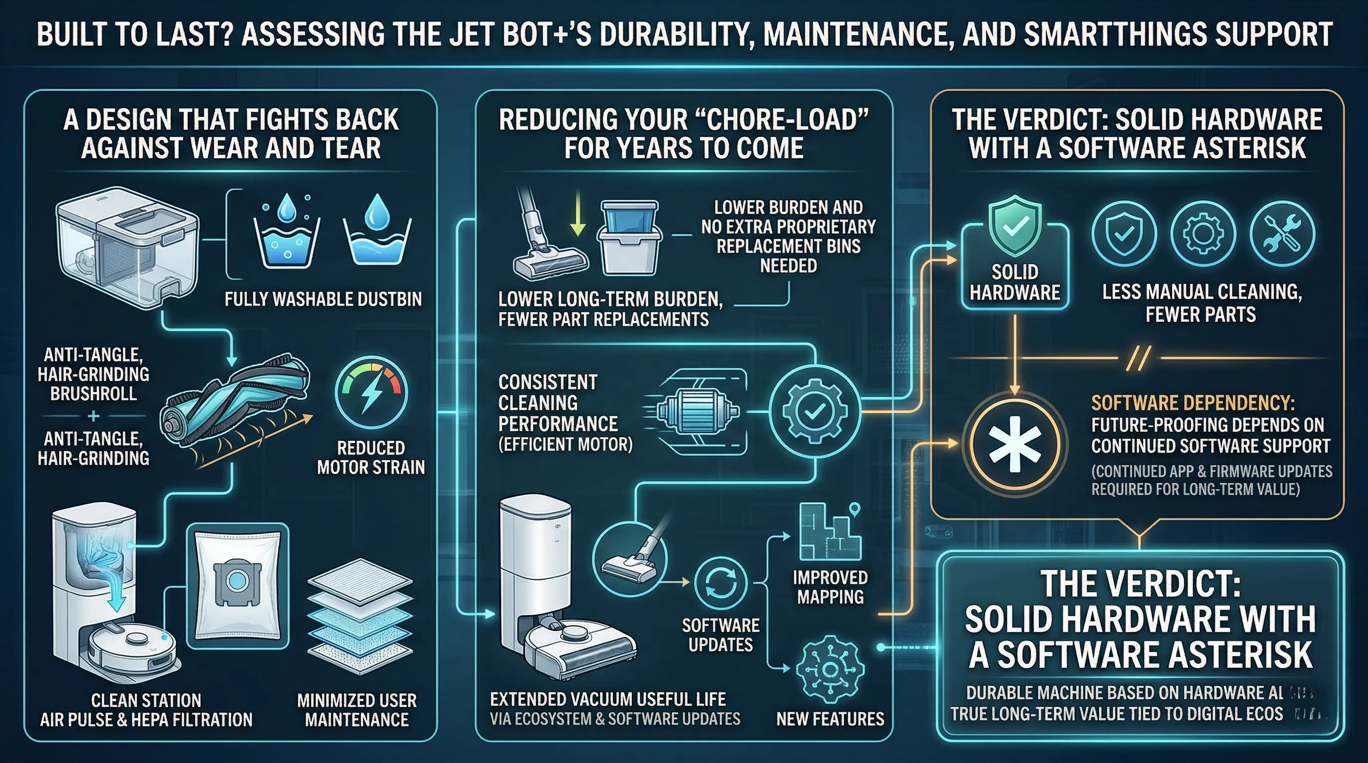 While the SmartThings integration is robust now, the vacuum's "smarts" and future-proofing are entirely dependent on Samsung's continued support for the app and device firmware.