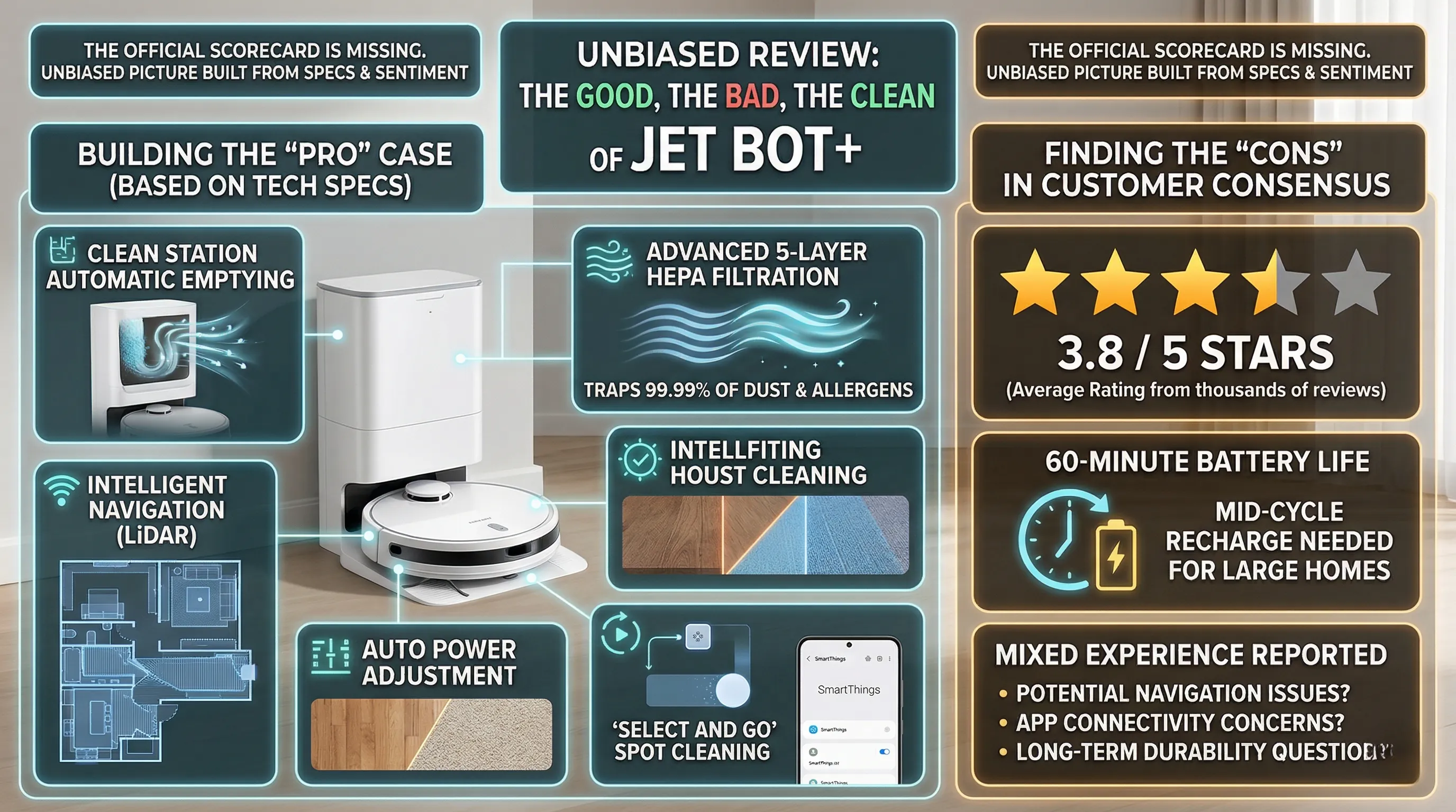 For the smart home enthusiast who prioritizes features like the hygienic Clean Station and HEPA filtration and is willing to accept a product that has a few known detractors, the Jet Bot+ represents solid value.