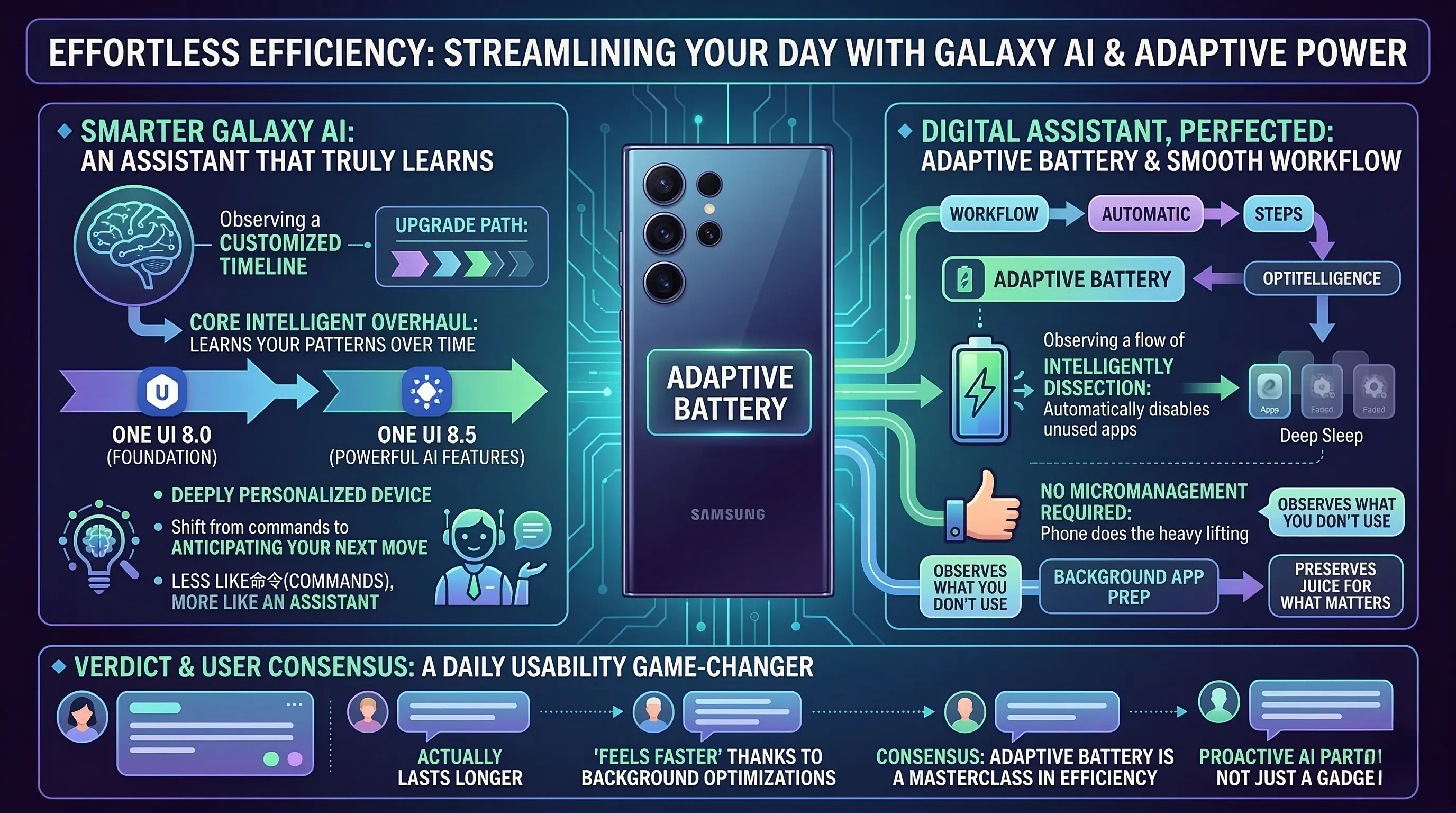 This isn't about isolated features; it’s a complete overhaul of the phone’s core intelligence, starting with the foundation of its efficient and user-friendly AI experience in One UI 8.0.
