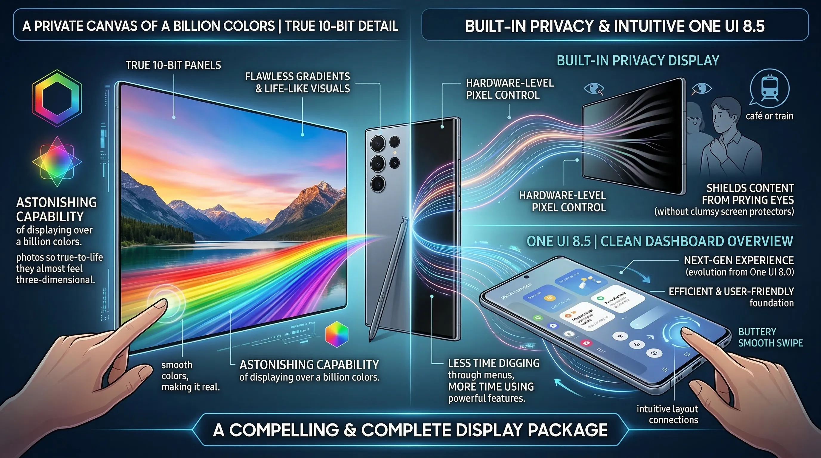 Samsung has delivered a screen that not only dazzles the eyes but also intelligently protects your information, making it one of the most compelling and complete display packages on the market today.
