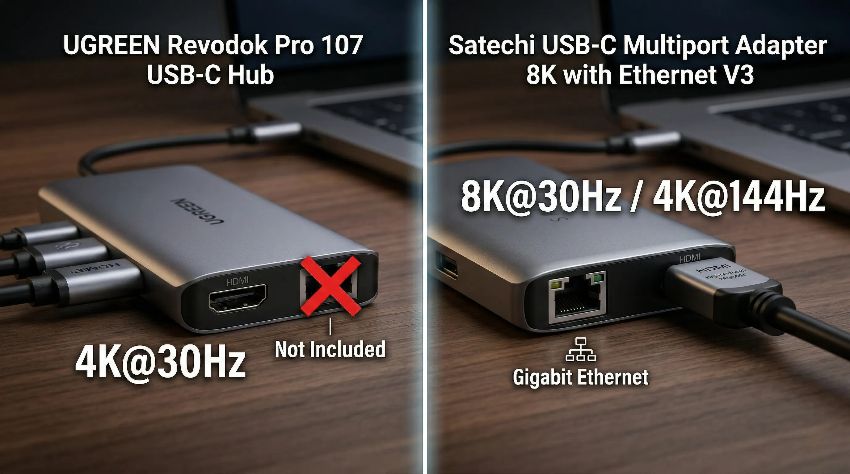 Today, we're pitting two contenders against each other: the premium Satechi USB-C Multiport Adapter 8K with Ethernet V3 and the UGREEN Revodok Pro 107 (10Gbps Edition).