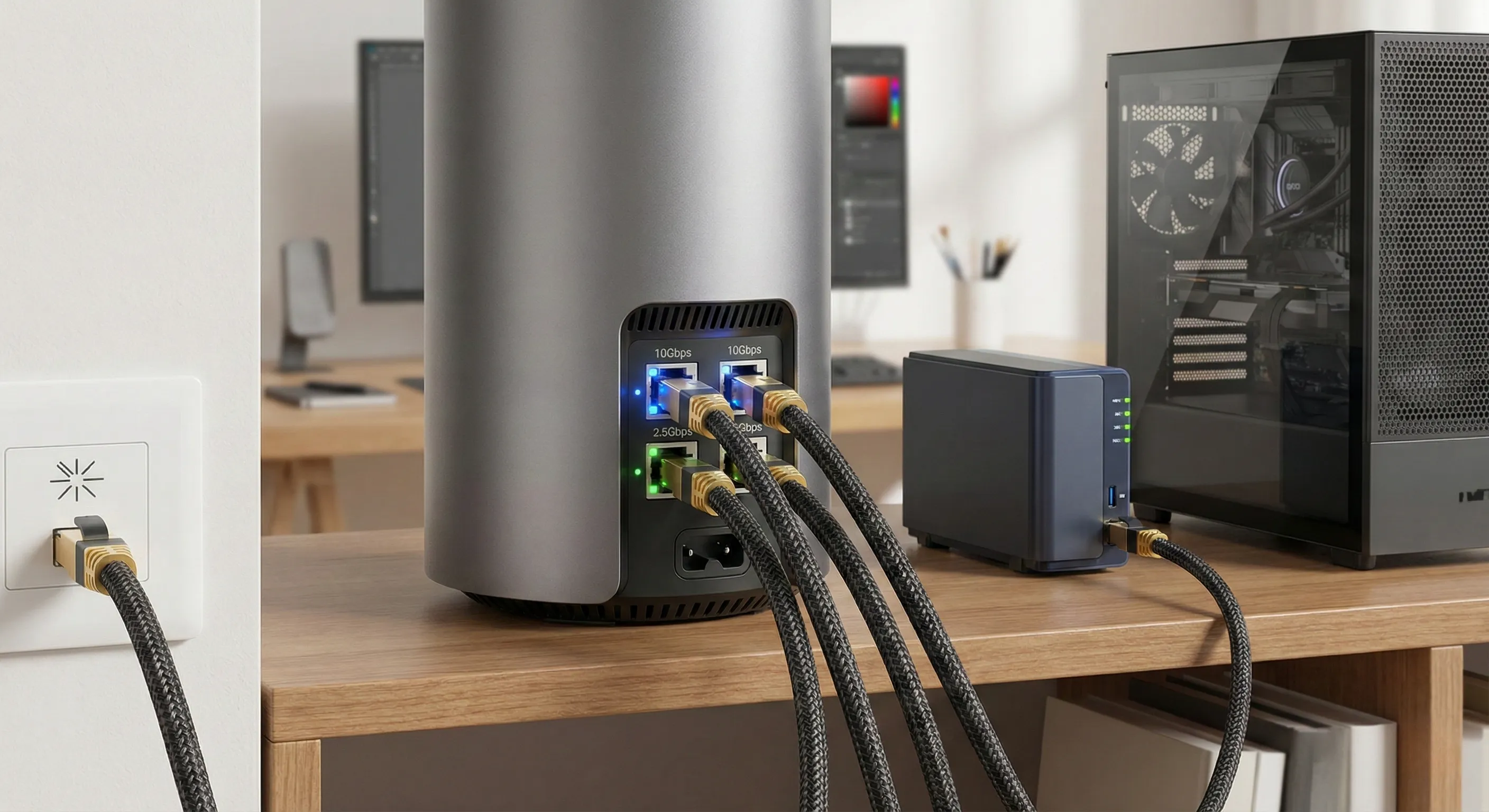 For NAS users and content creators, the dual 10Gbps ports provide unparalleled direct connectivity to network attached storage (NAS) devices, enabling lightning-fast file transfers, reliable backups, and facilitating near-zero latency for intensive tasks such as wireless editing of large video projects with Adobe Creative Cloud.