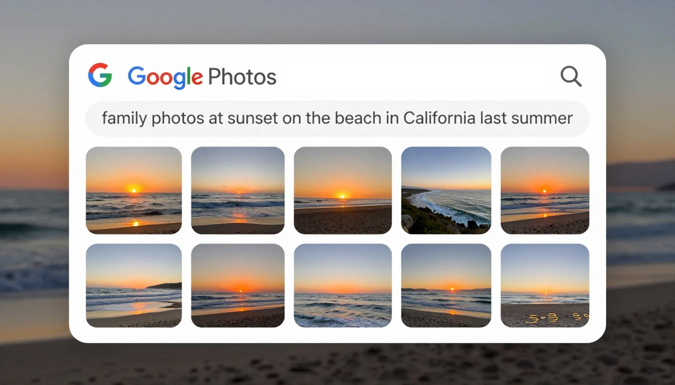 Instead of simple keyword searches like 'beach', you can search for complex concepts such as "family photos at sunset on the beach in California last summer" to yield highly accurate and relevant results.