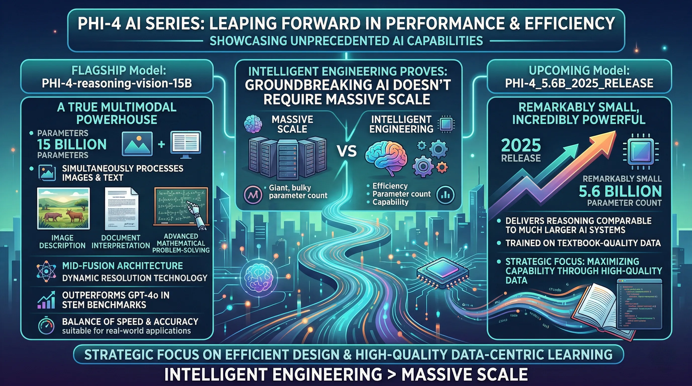 The success of these smaller models validates the hypothesis that the quality of training data and efficient design—such as Phi-4's mid-fusion structure and conditional reasoning—are becoming more critical differentiators than parameter count alone.